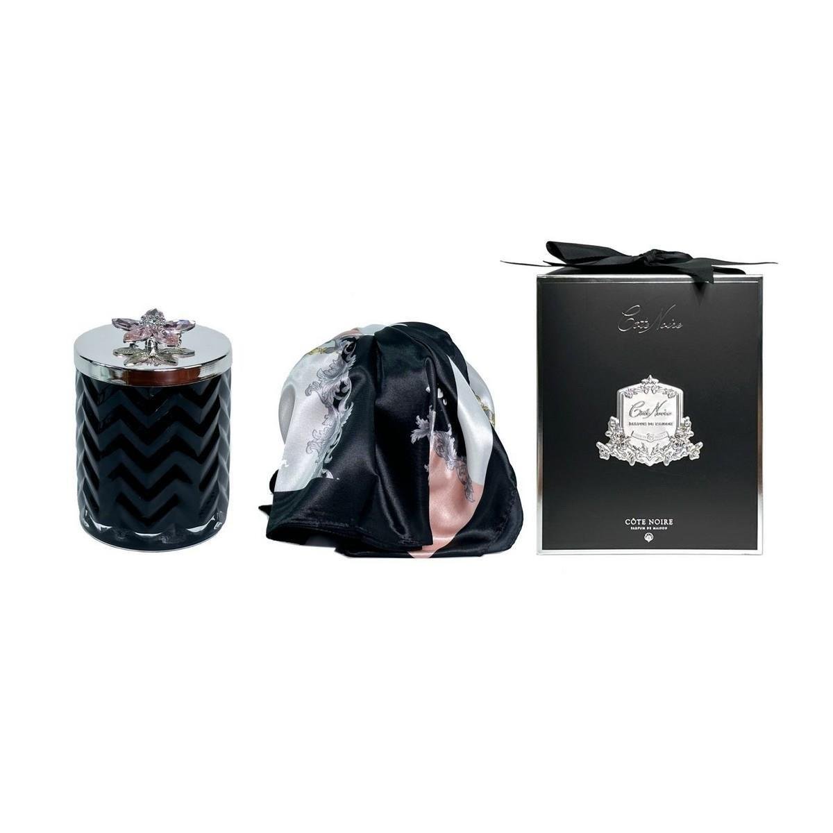 Sınırlı sayıda üretilen balıksırtı mumlar, ipeksi bir eşarpla süslenmiş zarif bir Côte Noire hediye kutusuyla süslenmiş dekoratif bir balıksırtı camında gelir.